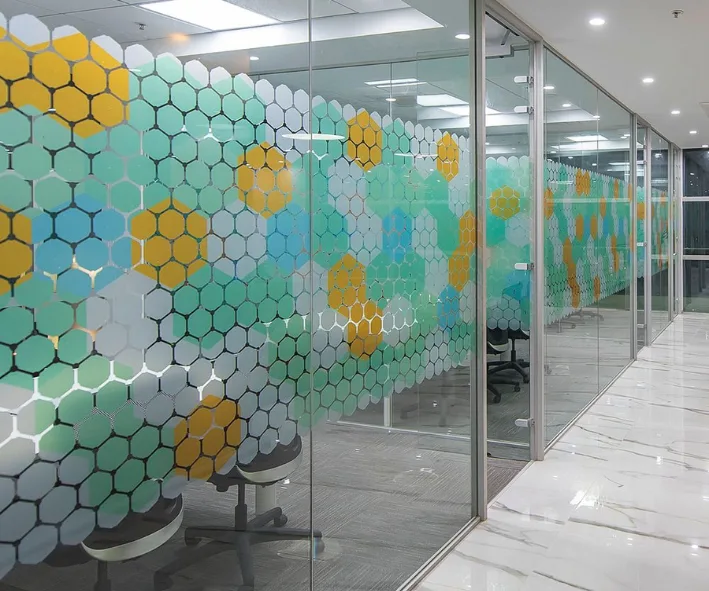Cutting sticker dengan bahan Sandblast dapat di buat design apa saja sehingga ruangan kaca menjadi tampil lebih indah dan elegan.